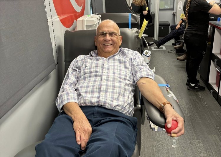 town for participating in Tuesday’s blood drive in the Municipal Building parking lot. She